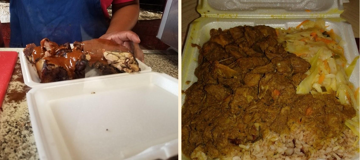 Do not miss the jerk pork and chicken jerk. They are full of flavor. Also, the curry goat is a favorite. Pair them with rice and peas for a complete meal.